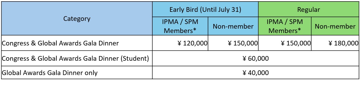 For IPMA Member Associations and IPMA Corporate and Academic Partners, please contact the Congress Program Committee at spm_conf@spm.or.jp to request your invitation code and password.